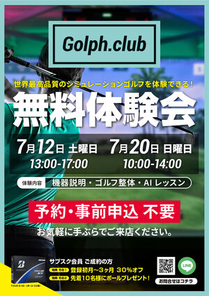 来る 7月20日(土) 10:00~14:00に、Golph.club Suminoeにて 無料体験会 を開催いたします!